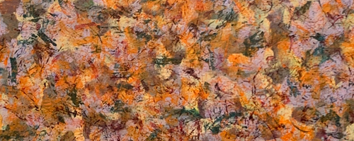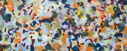 "I make spontaneously generated color fields with integrated conceptual imagery in recent work. I think of them as functional models of perception, intuition, abstraction and the ecstatic experience."